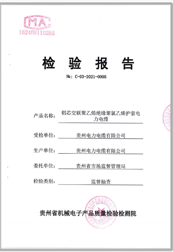 鋁芯交聯(lián)聚乙烯絕緣聚氯乙烯護(hù)套電力電纜 檢驗(yàn)報(bào)告