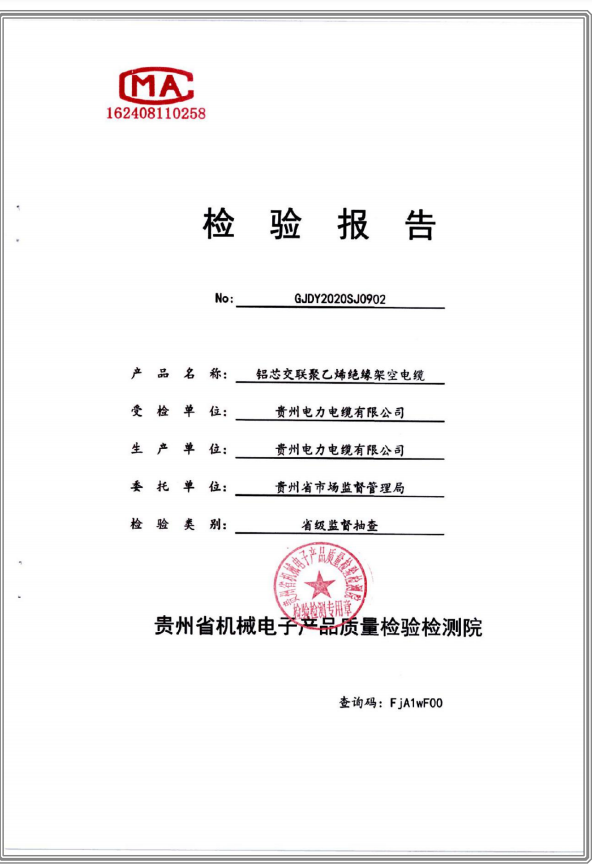 鋁芯交聯(lián)聚乙烯絕緣架空電纜 檢驗(yàn)報(bào)告