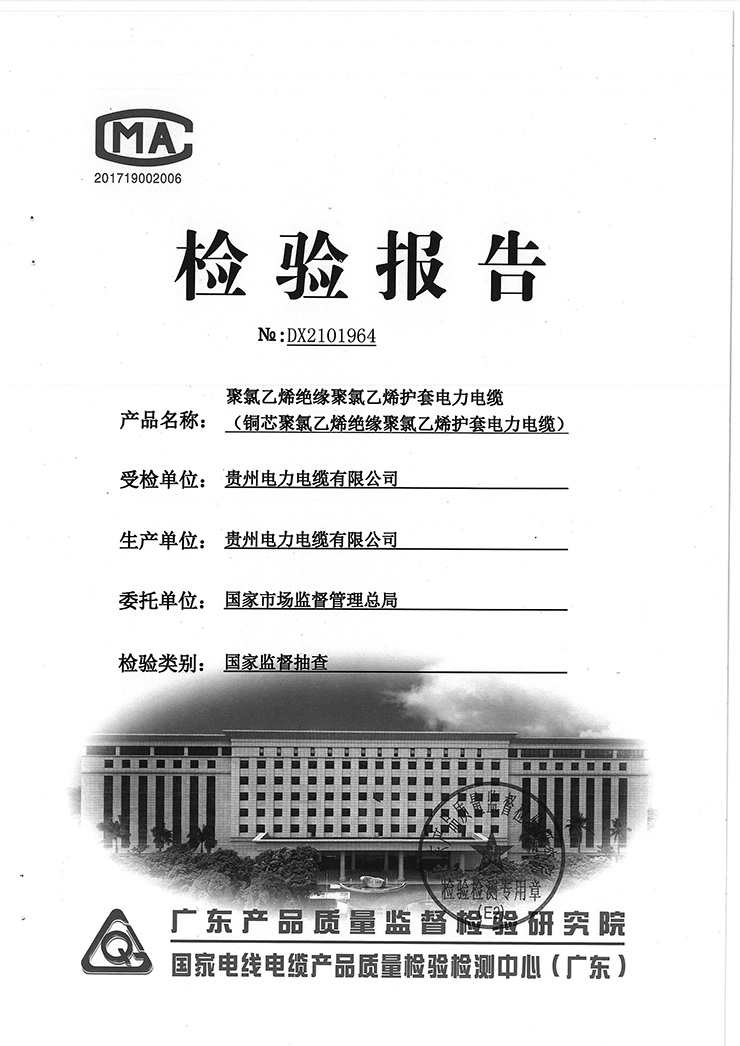 聚氯乙烯絕緣聚氯乙烯護(hù)套電力電纜(銅芯聚氯乙烯絕緣聚氯乙烯護(hù)套電力電纜)國(guó)抽檢驗(yàn)報(bào)告